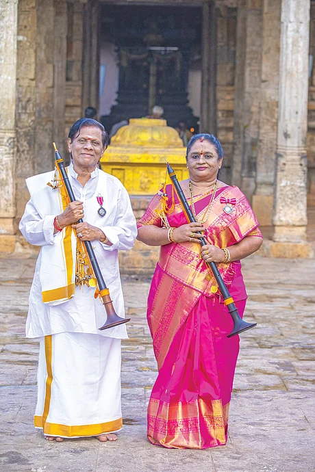 உயிர்மூச்சின் அழகிய ஒலி வடிவமே நாகஸ்வர இசை. தமிழர் வாழ்வின் எல்லா சுபநிகழ்வுகளிலும் இருக்கும் இந்த இசைக்கருவியைக் கையில் எடுத்தபோது மெகபூப் சுபானிக்கு 6 வயது. அவர் அக்கா மகளான காலிஷாவுக்கு 5 வயது. ஒன்பது தலைமுறையை நாகஸ்வர இசைக்கலைக்கு ஒப்புக்கொடுத்த ஒரு மரபுக் குடும்பத்திலிருந்து உதித்த இந்த இசை இணையர், 47 ஆண்டுகளாக நாகஸ்வர தமிழிசைத்து உலகத்தையே மயக்கிக்கொண்டிருக்கிறார்கள். இந்தியா முழுக்க முக்கியக் கோயில்களில் இவர்கள் வாசித்த மல்லாரி இன்னும் காற்றில் உலவிக்கொண்டிருக்கிறது. வறுமை வாட்டிய சூழலிலிருந்து நாகஸ்வரத்தைப் பற்றிக்கொண்டு எழுந்து வந்த இந்த மரபிசைக் காவலர்கள், தமிழகத்தின் இசைமுகமாக உலகெங்கும் கொண்டாடப்படுகிறார்கள். மதங்களைக் கடந்தது இசையென இறுக்கமுடைத்து நிறுவிய துணிவு மனதுக்காகவே கொண்டாடலாம் காலிஷாவை. ஜனாதிபதி மாளிகைக்குள்ளும் நாகஸ்வரம் இசைத்து தேசத்தை நெகிழவைத்த இந்தத் தமிழகத்தின் பெருமித தம்பதிக்கு நம்பிக்கை மனிதர்கள் மகுடம் சூட்டி மகிழ்கிறது ஆனந்த விகடன்.